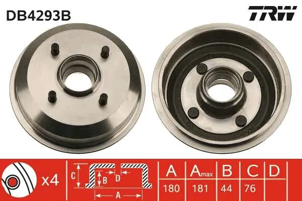 - Średnica wewnętrzna bębna hamulca [mm] :180