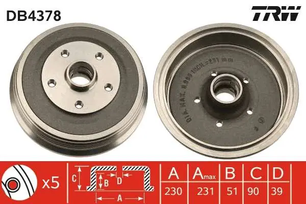 • Średnica wewnętrzna bębna hamulca [mm] :230