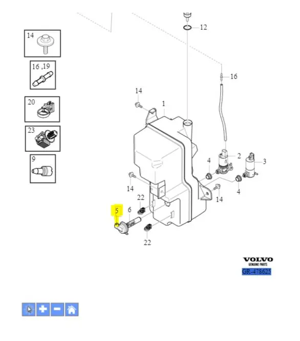 Czujnik poziomu płynu do spryskiwaczy Volvo EX40 EC40 XC40 Polestar2 V90