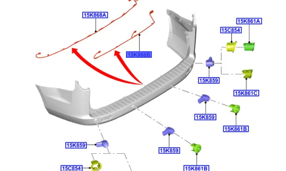 Wiązka czujników parkowania zderzaka tylnego Ford Transit Custom 2012 –