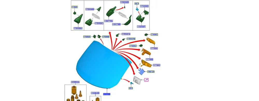 - Przeszklenie: Przeszklenie akustyczne (redukcja hałasu),z mocowaniem lusterka,ogrzewany,z przygotowaniem dla czujnika deszczu / światła,z uchwytem kamery,z okienkiem do podglądu numeru nadwozia VIN,obramowany