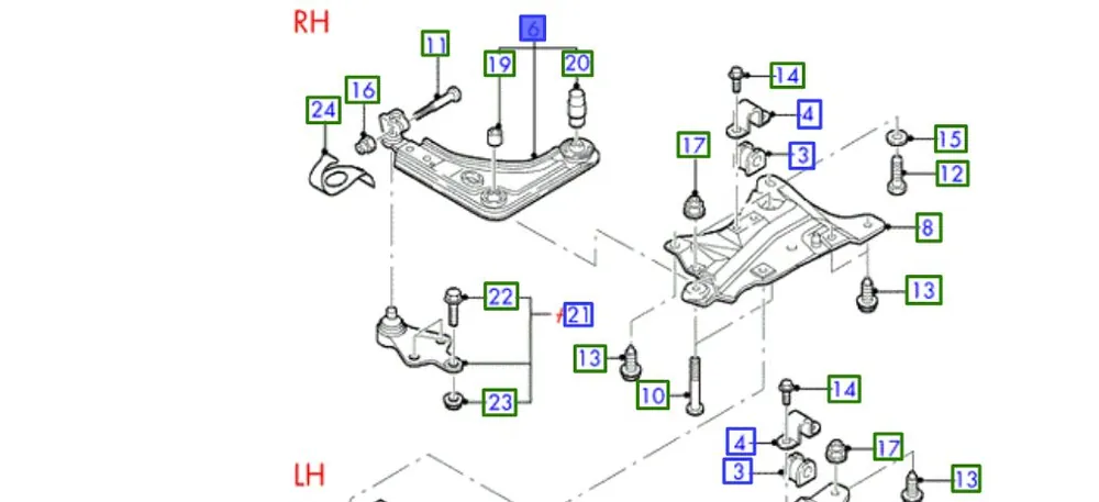 WAHACZ -ZAWIESZENIE PRZEDNIE, PRAWA STR.,WAHACZE ZAWIESZENIA NALEŻY WYMIENIAĆ PARAMI,JEŚLI SĄ WYPOSAŻONE W PUSTĄ TULEJĘ TYLNĄ(ZE WSPOMAGANIEM KIEROWNICY)