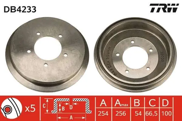 - Średnica wewnętrzna bębna hamulca [mm] :254