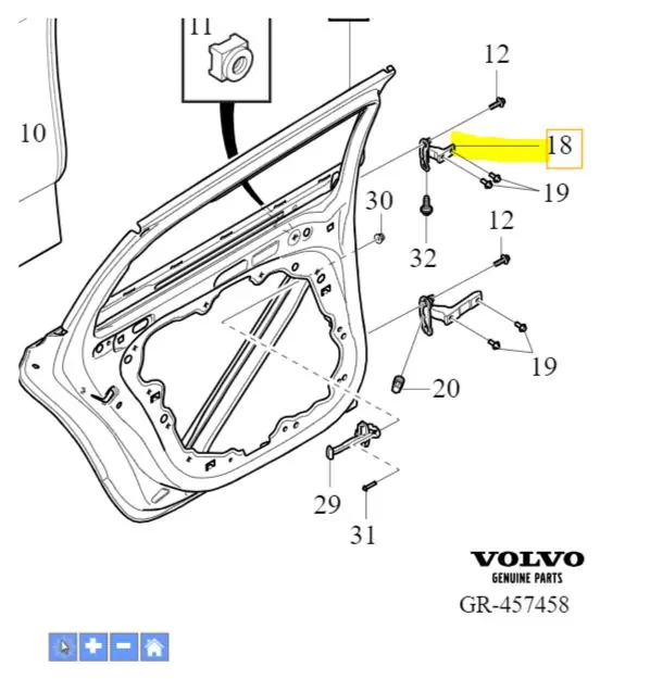 Zawias górny drzwi lewy tył Volvo XC60 ES90 V60 V60CC