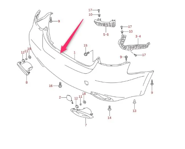 Zderzak tylny Suzuki Kizashi z otworami na PDC